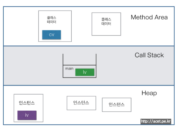 클래스 영역에 선언된 변수를 멤버변수라 한다. 멤버변수 중에 static이 붙은 것은 클래스변수, 붙지 않은 것은 인스턴스 변수라 한다. 멤버변수는 인스턴스 변수와 static변수 모두 통칭하는 말이다.