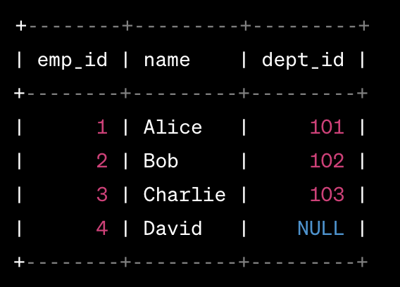 INSERT INTO employees (emp_id, name, dept_id) VALUES