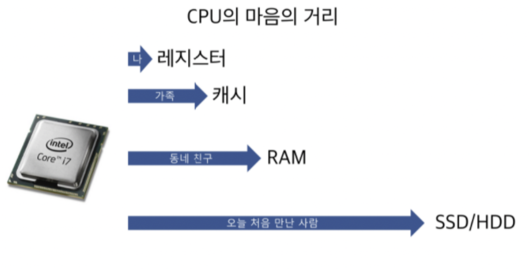 ๐ ๋ฉ๋ชจ๋ฆฌ๋ฅผ ํ์์ ๋ฐ๋ผ ์ฌ๋ฌ์ข ๋ฅ๋ก ๋๋๋ฉด CPU๊ฐ ๋ฉ๋ชจ๋ฆฌ์ ๋ ๋นจ๋ฆฌ ์ ๊ทผ ๊ฐ๋ฅํจ.