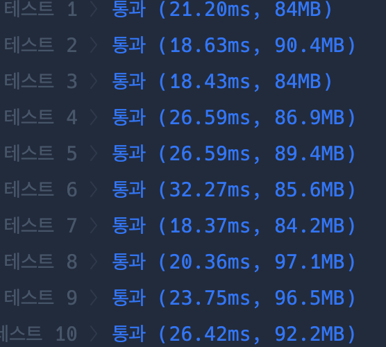 ➡️ 시간과 메모리는 확실히 줄었지만.. 여전히 비효율적이다. 다음엔 효율적으로 풀어보자!
