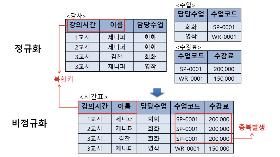 β‘οΈ μμ κ·ν : μ κ·νλ ν μ΄λΈμ λΉμ κ·ν μνλ‘ λ§λ€κΈ° μν λ°©λ² μ€ νλμ΄λ€.(λΉμ κ·νκ° λ ν¬κ΄μ μ)